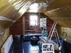 | Plafond: plaatsen isolatierollen (op bestaande latten) | 14.00 | M2 |